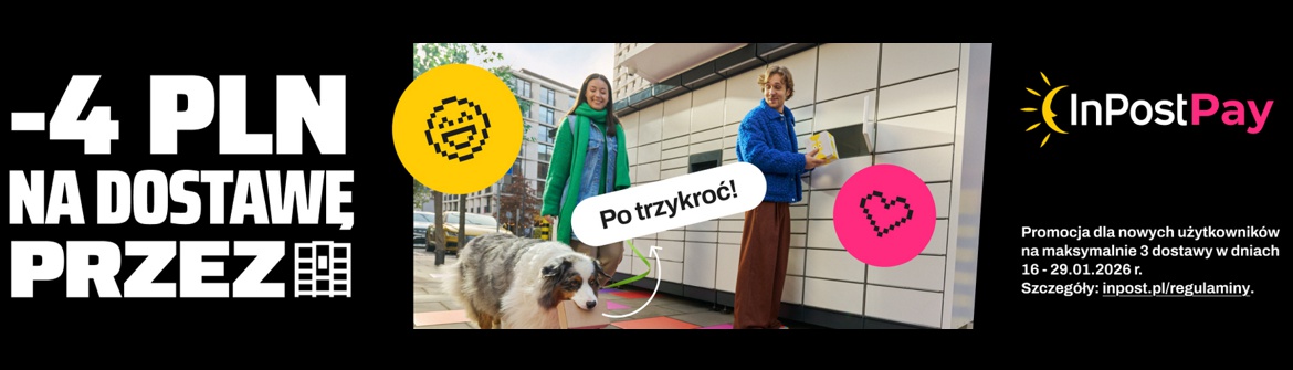 przy zamówieniu od 70 zł do Paczkomatu InPost lub punktu odbioru Orlen Paczka
