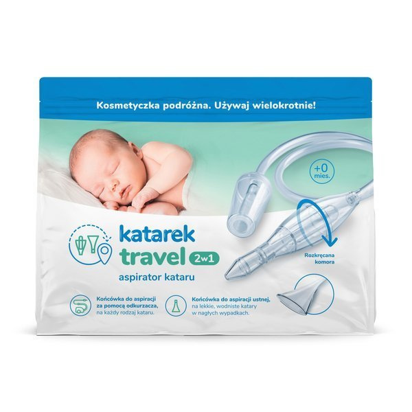 Planujesz wakacje marzeń? Nie zapomnij o Katarku Travel! W nagłych przypadkach użyjesz końcówki do aspiracji ustnej, a gdy (oby nie!) katar nie odpuści, odkurzacz podłączysz w hotelu. Dodatkowo, Katarek Travel zapakowany jest do pojemnej i poręcznej kosmetyczki podróżnej. Możesz do niej wsadzić również kilka ampułek soli fizjologicznej czy maść nawilżającą i paczkę chusteczek higienicznych!